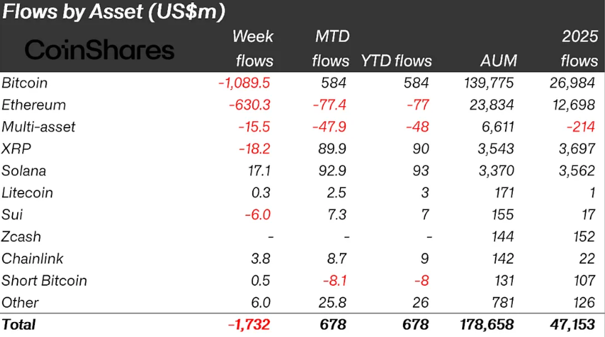 Esta situación no responde a un único factor, sino a una confluencia de variables macroeconómicas y dinámicas internas del ecosistema cripto, entre ellas que durante la última semana, los fondos cotizados (ETF, por sus siglas en inglés) de criptomonedas han registrado salidas netas por un total de 1.730 millones de dólares, la cifra más alta desde noviembre de 2025, según fue reseñado por Coinshares en su reporte semanal.