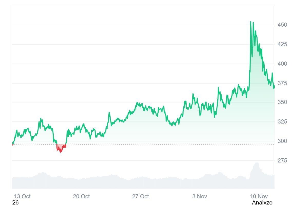 Monero, con su protocolo de confidencialidad robusto, consolida por debajo de los 400 dólares por unidad, manteniendo una capitalización de unos 7 mil millones y demostrando resiliencia en el sector, aunque sin haber alcanzado un nuevo máximo histórico en precio o capitalización de mercado. Esto sugiere un potencial de crecimiento significativo si el momentum persiste.