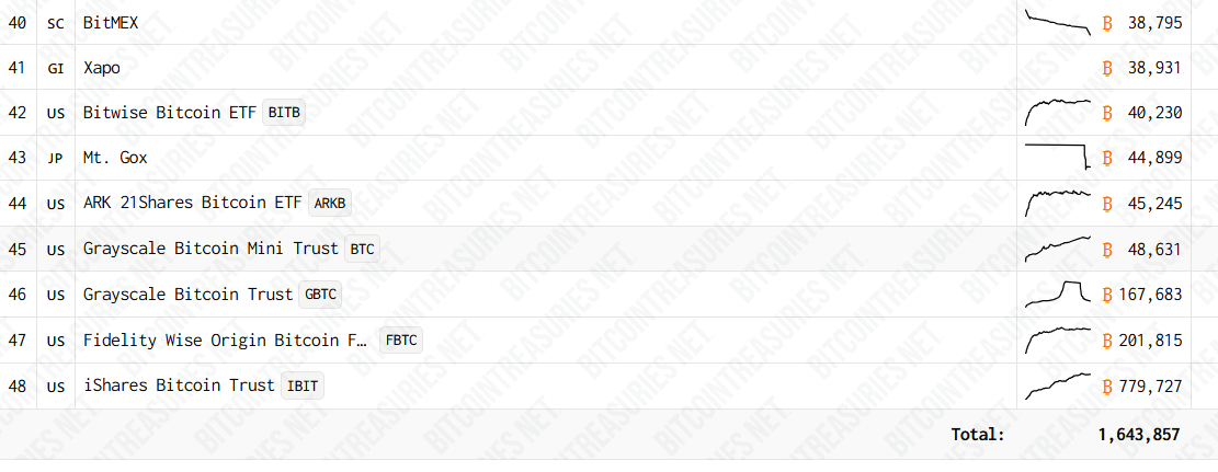 Venezuela Vs. El sector institucional (ETFs): Los fondos cotizados en EE. UU., que han revolucionado el mercado desde 2024, custodian en conjunto 1,643,857 millones de BTC, junto a ellos los exchanges, según los datos de Bitcoin Treasuries. La reserva de Venezuela representaría la mitad de todo el inventario de los ETF estadounidenses sumados, compitiendo directamente en volumen con el gigante BlackRock (IBIT).