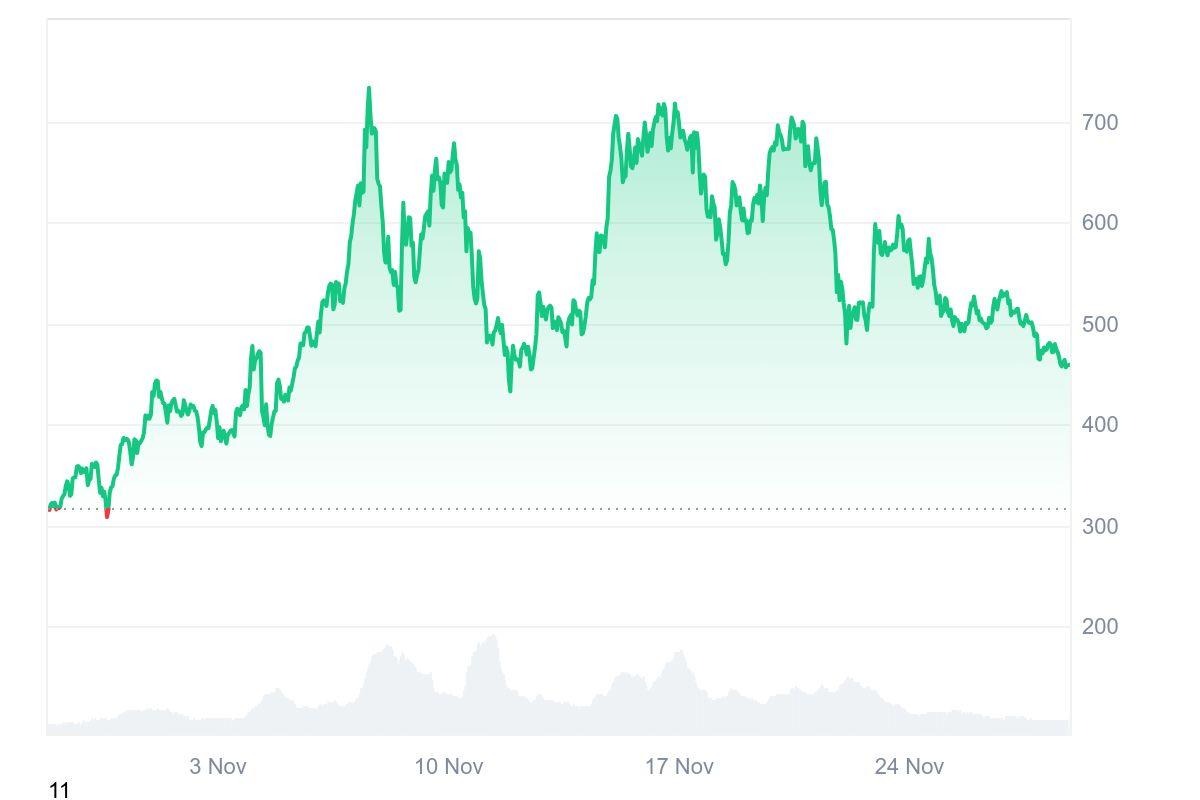 Zcash, pionera en transacciones privadas mediante su tecnología zk-SNARKs, ha protagonizado uno de los retornos más espectaculares del año con más de 1.000% de rendimiento. Para noviembre, es la segunda criptomoneda con mejores ganancias de noviembre, logrando un aumento del 30% sobre su valor.