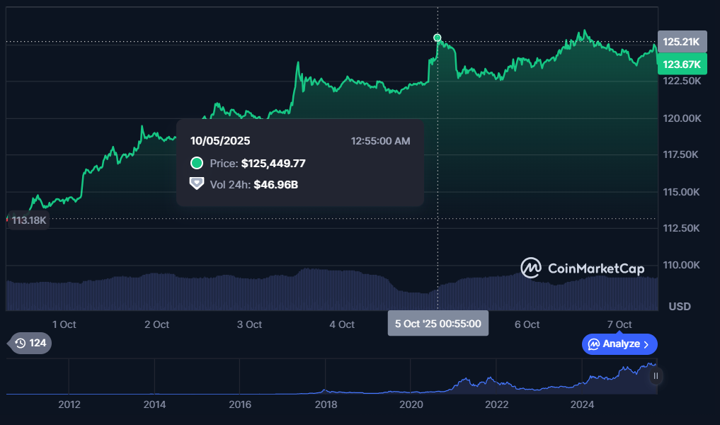 El atractivo de Bitcoin como activo de refugio seguro se está reafirmando, especialmente después del cierre del gobierno de Estados Unidos la semana pasada. Este factor, combinado con la estacionalidad históricamente alcista de octubre, pudo haber proporcionado la chispa para un movimiento de precios sostenido.