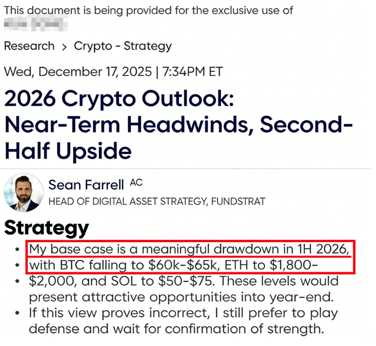 Pronósticos internos de Tom Lee prevén una fuerte caída de las criptomonedas en 2026